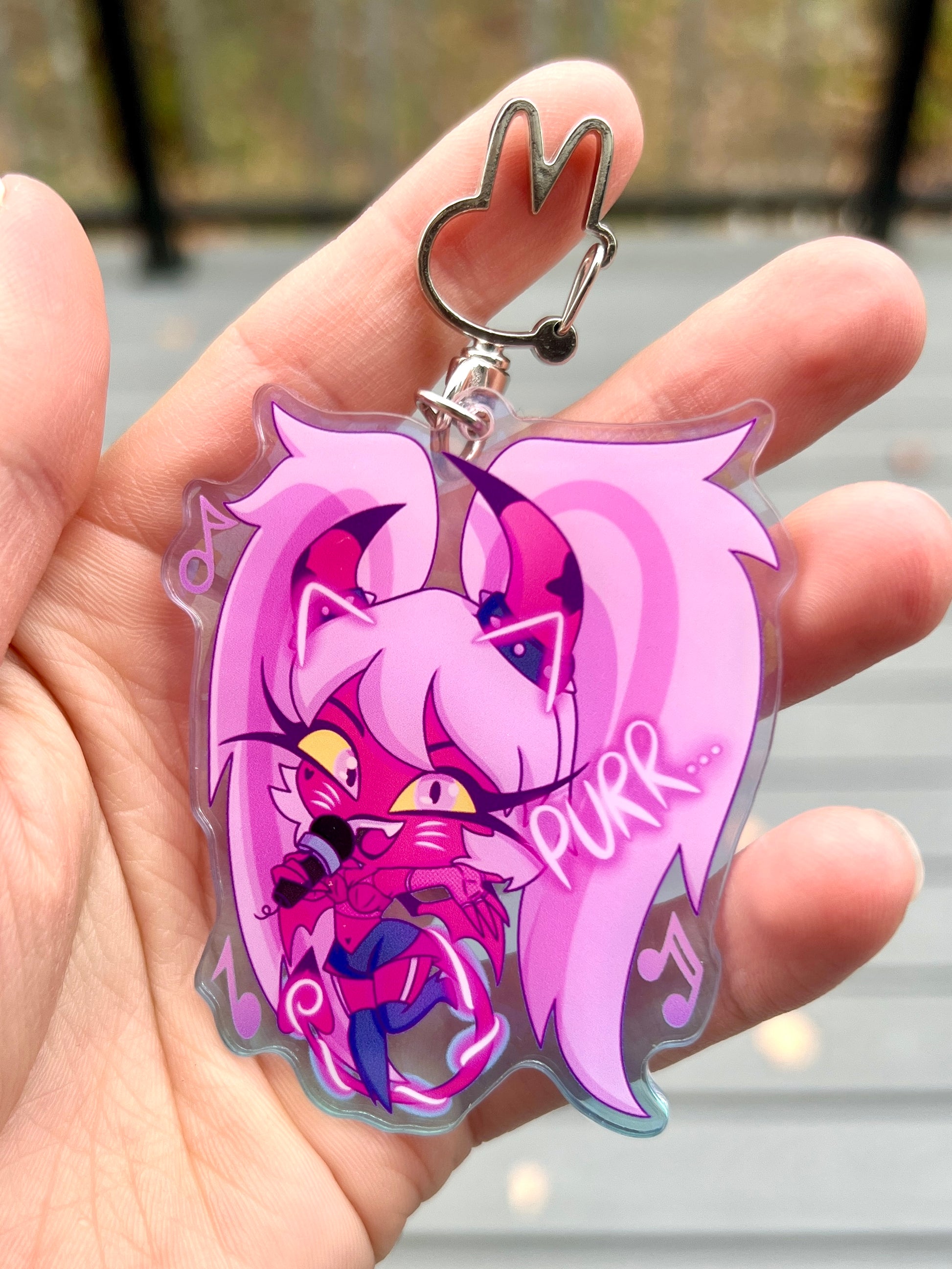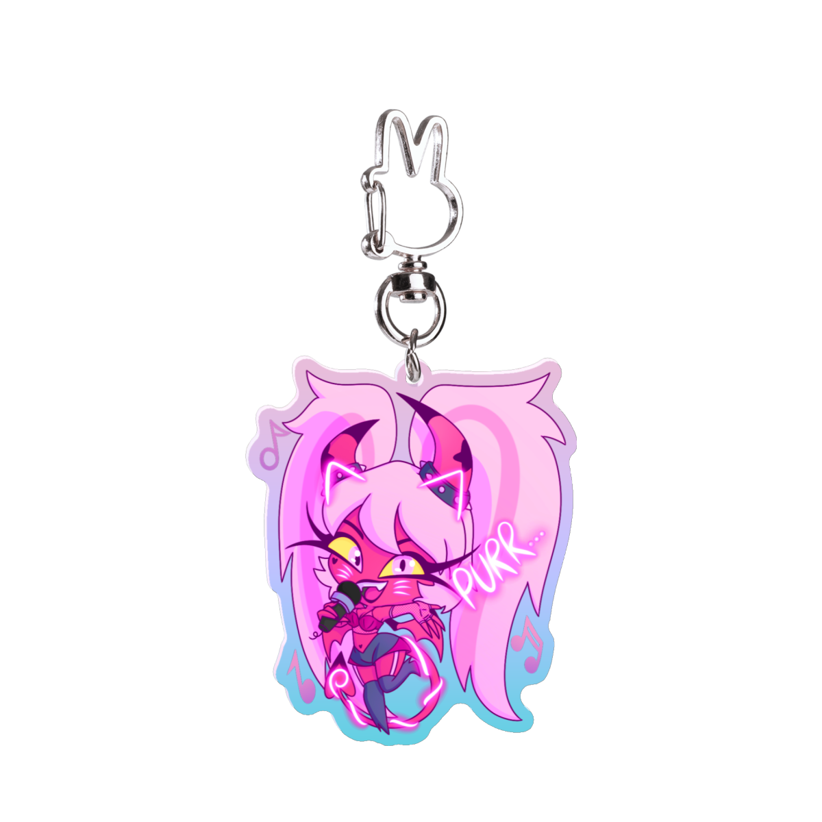 Halloween Verosika keychain with an opaque gradient pink to blue acrylic.