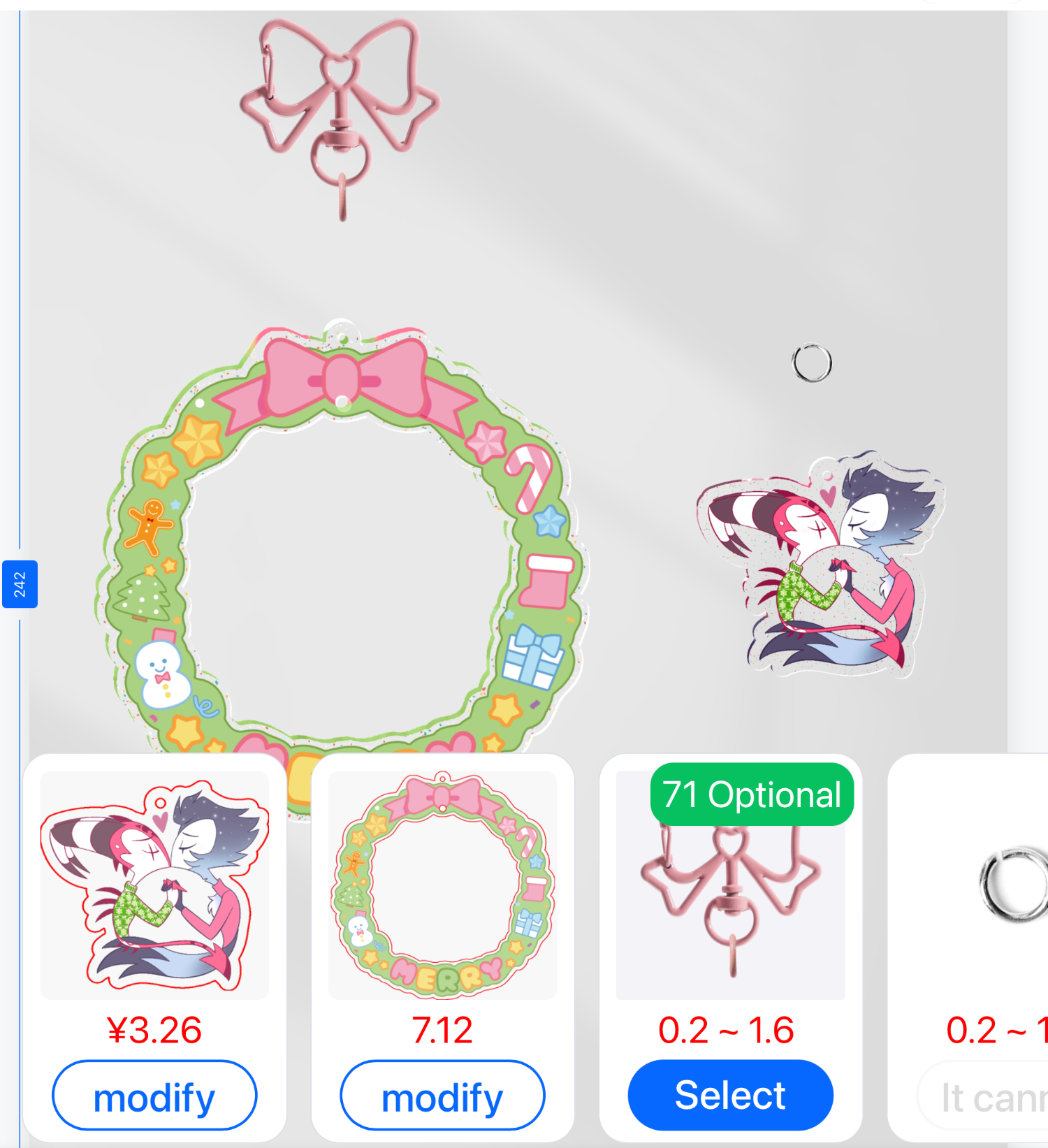 Keyring with a pink bow-shaped clip. Pendant itself is 10cm in length.